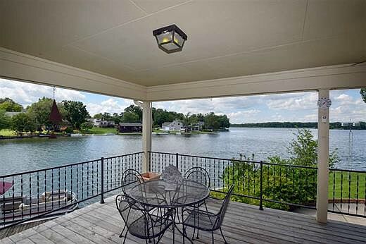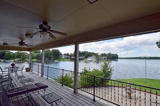 LAKE HOME:380 ft. lake frontage w/seawall.Boat dock,Magnificent views. Main Flr: 3BR,2.5Baths, Den w/masonry FP, Kitchen: granite, hrdwd flrs, gas cooktop, warming drawer, dbl ovens, Dumb waiter to basement level, Breakfast room, wrap around balacony, Surveillance cameras, automatic generator,3HVAC units, gas/elec, 220 wiring,9 ceiling fans, Professionally landscaped. Irrigation system. Automatic standby generator. Walk out basement, lake level den w/wet bar, FP w/wood insert,office, wrkshp