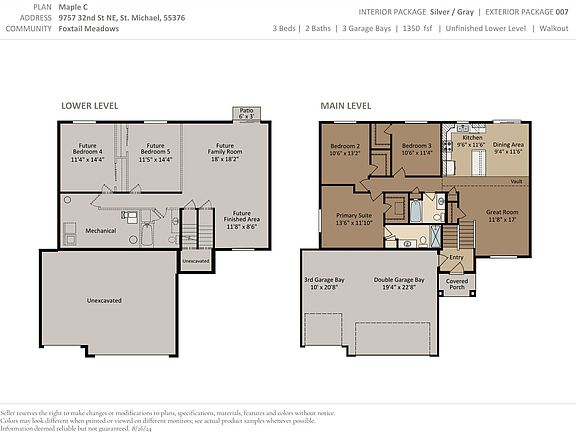 Home is under construction offering an estimated June/July move-in! Highlights include an unfinished walkout lower level! The Maple floor plan features an Open Concept Main Living Area including 3 Bedrooms, 2 Bathrooms, Kitchen, Dining Room, Great Room, & Vaulted Ceiling. Kitchen highlights include a spacious center island, window overlooking the backyard, stainless steel appliances, quartz countertops, & painted white cabinets. Primary Suite features a private bath & walk-in closet. Bedrooms 2 & 3 offer walk-in closets. Spacious Lower Level is ready for future finish including future family room, 4th & 5th bedrooms, & bathroom. Renderings & photos may not depict actual plan, materials, & finishes may vary. All measurements are approximate.
