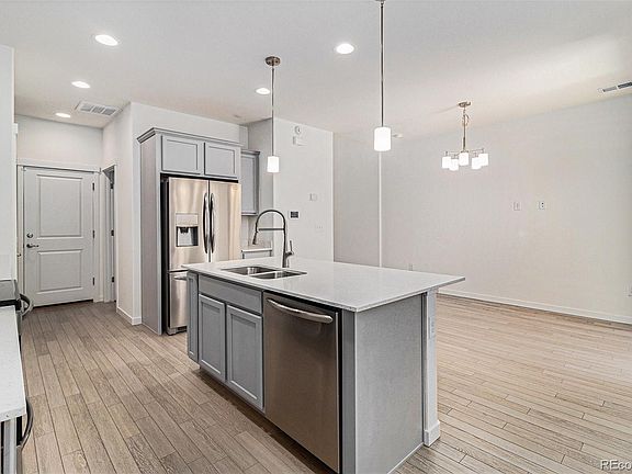 Don't miss your chance to scoop up this near brand-new townhome in this lovely and well maintained Cornerstone community! This modern and stunning 2 bed/3 bath townhome offers so much versatility and ease. Step inside large entry to discover an open-concept main floor layout - modern LVP flooring throughout and so much natural light. The kitchen is a chef's dream featuring quartz countertops, stainless steel appliances, large island and plenty of counter space and storage for all your culinary needs. Main level has a slider to the back outdoor space, and the entire main level is perfect for entertaining. Then take your escape to the upper level sanctuary for rest and relaxation. Two large bedrooms, both with their own bathroom, the primary bedroom features a 4 piece en suite and large walk in closet with organizational shelving. Laundry on upper level. The community offers beautiful landscape and excellent coverage of all exterior structure and common spaces. One car attached garage with ingress to unit, additional driveway parking and plenty of open parking for guests. Green space, playground and walking & biking trails abound. Riverdale Park and Open Space is so close by! Great location with easy access to so many major arteries makes any commute a breeze! Light rail at Crossroads and 104th gets you downtown in 22 minutes. The HOA amenities include the impressive 1.5M clubhouse, with a social area, full kitchen, business center, fitness center, pool, and hot tub. Don’t miss this one, book your showing today!