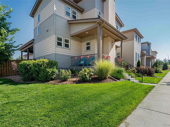 One of the absolute best lots in the highly desirable Spaces Community! End lot facing the park with Mountain View's from a covered spacious patio. Western facing patio offers beautiful sunsets and park views, walking distance to Valor Christian School, park, playground, and community garden. A well maintained home with all the upgrades including upgraded kitchen cabinets with soft close, granite countertops, custom tile work and back splashes, duel head rain shower in master bath, tankless water heater, radon mitigation system, sump pump, class IV hail resistant roof shingles. Secondary bedrooms share Jack-and-Jill bath, master bedroom features walk-in closet and spacious master bath. Oversized corner lot with privacy. Move-In Condition!