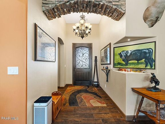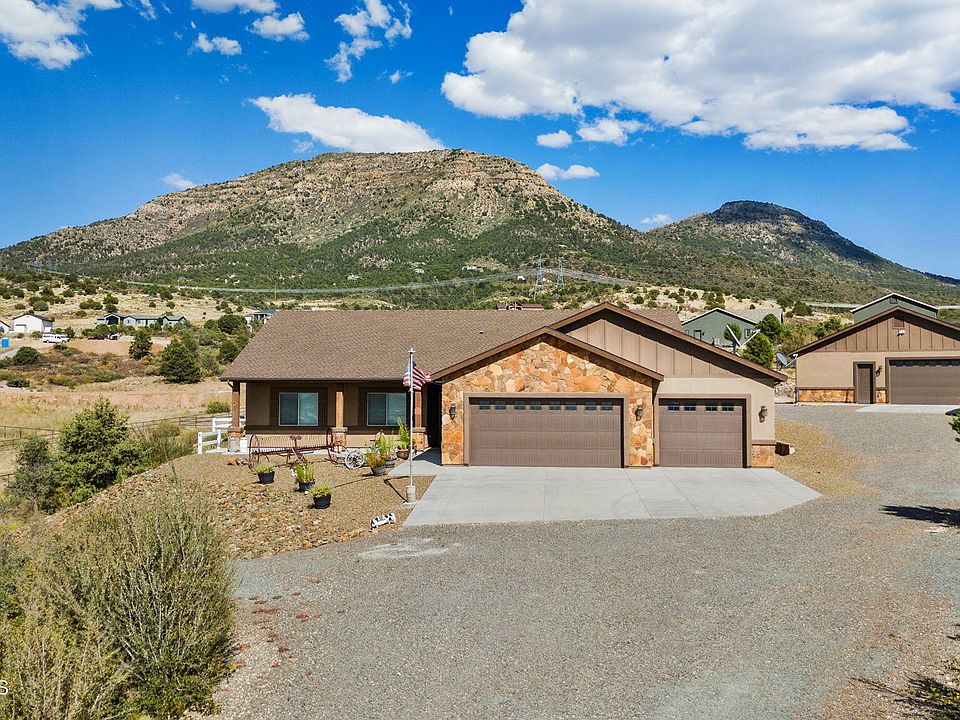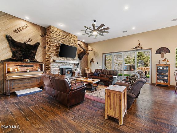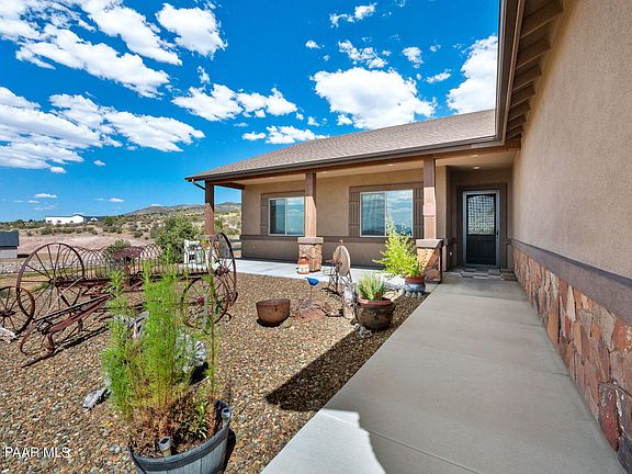 Exceptional Custom Home in Legend Hills! One of the finest settings in Yavapai County! 360 Degree VIEWS and Spectacular Sunsets! Sought after horse setup, 5 -horse stalls, metal fencing throughout property, Shop 50x30 w/tack room 8x10 w/sliding barn door. RV plug 50amp. Shop wired for 220 outlet. Spacious 2802sqft Custom Home, 4 bedrooms, 3.5 baths, extra deep 3 car garage. Spacious 12'ceiling in living room/kitchen, 10'ceilings throughout. Stunning interior stone accents, mudroom/sitting area, Knotty Alder cabinets, Granite counter tops, double ovens, stove pot filler, walk-in pantry and porcelain wood-look tile floors. High efficiency Lopi pellet stove. Control Panel for back up generator(Gen. not included),2-50gal water heaters. Power Surge Controller. Move In Ready, Welcome Home!