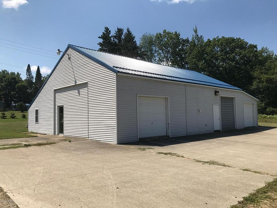 Opportunities are endless, Located on High traffic M-66, Large commercial building featuring, finished interior, heated with natural gas furnace, Newer steel roof , vinyl siding, 2 - 8' overhead doors, and a 10' overhead door, 220 & 440 power, Insulated 2x6 walls, 1/2 bath, septic and 5" well, upstairs storage area.building was used as a Dyno shop, it has floor pit, safety glass in office area , filtered air flow, You could probably even turn it into a single family residence with township approval