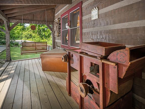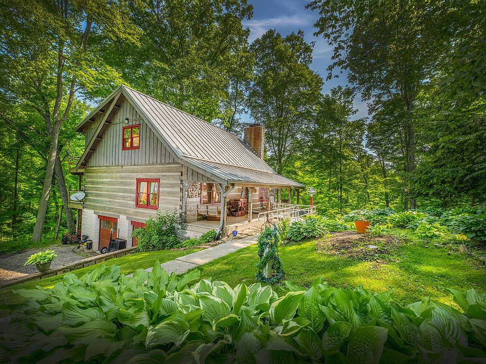 Whether you're looking for a forever home, a second home, or a hunting retreat, this secluded log cabin offers the rare combination of privacy, tranquility, and the comforting sense of being surrounded by nature. This 12 wooded acres across four parcels in Mount Vernon, is the ideal retreat. Appalachian log home built with hickory logs offers timeless craftsmanship, thoughtful design & natural seclusion. With over 2,000 sq ft, this two-bedroom, two-bathroom home blends rustic charm with modern comfort in a private, retreat-like setting. Inside, you'll find authentic log walls with exposed beams, warm wood tones & light chinking that highlights the grain of the hickory. A vaulted ceiling with an open loft above the kitchen & living room enhances space & light, while a wood-burning fireplace anchors the living area. Bamboo floors stained in dark walnut add richness in the space. The bedrooms are generously sized, with the primary featuring an ensuite bath & walk-in closet. Recent updates include a new heat pump, furnace, central A/C & electrical improvements. The full basement offers storage & workspace. The home is supplied by fresh spring water, supporting a self-sufficient lifestyle. Set deep within mature woods, the property is surrounded by uninterrupted views of trees & wildlife in every direction. A separate Amish-built log guest cabin, constructed in 2021, sits just a short distance from the main home. It overlooks the ravine & Armstrong Run, offering quiet seclusion & scenic views. Features include a loft, outhouse, propane heater, wood stove, generator hookup & additional storage — ideal for guests or a creative retreat. Armstrong Run flows through the land, adding the peaceful sound of moving water in the spring. Whether sipping coffee on the porch or enjoying the filtered light through the trees, this setting is both private & awe-inspiring. A rare opportunity for true immersion in nature without sacrificing comfort.