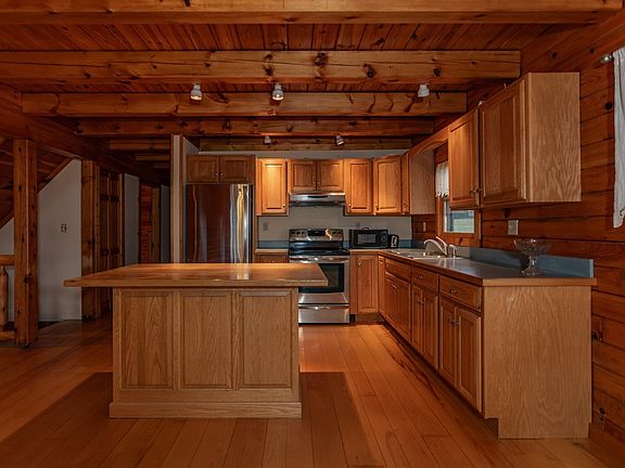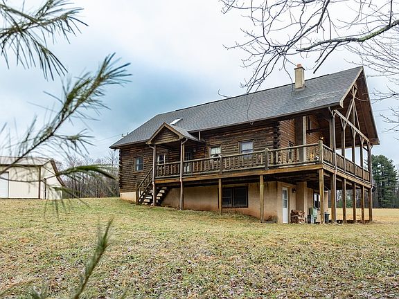 Rustic Log Cabin Retreat on 46+ Acres in Sullivan County, Shunk, PA: Welcome to your dream getaway! Nestled amidst the breathtaking landscapes of Sullivan County, this beautifully crafted log cabin home offers unparalleled views and comfort on over 46 scenic acres. Built in 2004, this stunning 2-bedroom, 3-bathroom residence perfectly blends rustic charm with modern convenience. The inviting front deck is the perfect spot to enjoy serene views of the surrounding forest and wildlife. The open-concept living room features soaring cathedral ceilings & exposed wooden beams. Overlooking the main living space, the loft adds extra room for a home office, reading nook, or additional sleeping area. A full, part-finished basement presents endless possibilities; finish it as a recreation room, workshop, or additional living space. The spacious 2 Car garage with carport provides secure parking and additional storage for outdoor gear and tools next to the extra storage shed.