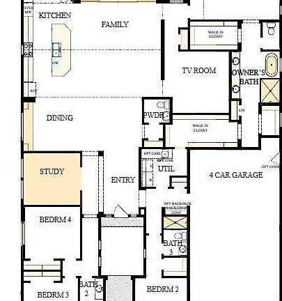 Corner homesite over 12,693 sf, 16 ft sgd in family room, 14 ft vaulted ceiling in family room, 14 ft ceilings with transom windows in the Owner's retreat with double closets and free-standing tub, enclosed office, plank style tile throughout with carpet in bedrooms, Tiled shower in Owner's retreat with rain can, upgraded back splash in kitchen to top of stacked white cabinets with glass and stainless steel hood, buckskin cabinets at island, dining room cabs, 4-car garage . Door from Owner's closet to utility room. Full utility room cabs with sink. 2X6 construction and extensive new home warranty. see you soon!