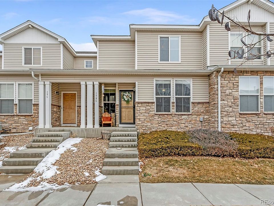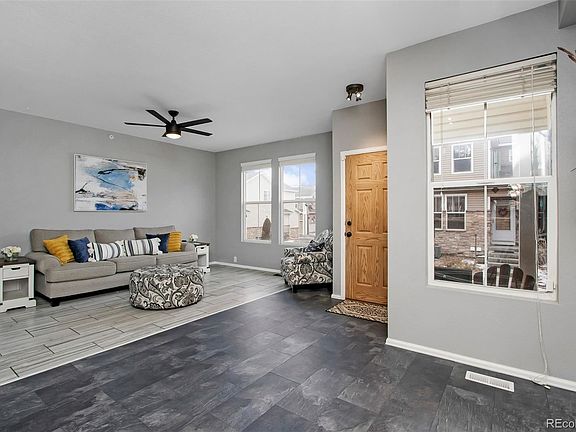 Welcome home to this beautifully updated townhome in the heart of Fronterra Village! Don't miss out on this rare 3 bedroom, 2.5 bathroom unit built in 2004 with new tile flooring in the kitchen/dining room/bathrooms, new carpet throughout, new paint, new water softener, new drinking water filtration system, newer water heater, new kitchen appliances, furnace was serviced in the 6 month, keypad smart lock on garage door with lots of shelving for storage plus storage under stairs. Sellers are including the high-end Samsung washer/dryer and all kitchen appliances. Ceiling fans in all bedrooms. HOA covers your exterior grounds/maintenance, snow removal, trash, insurance w/ roof and siding. Very family friendly neighborhood with parks & playgrounds. Great school district. Close to DIA and major highways, plus new shops less than 5 minutes away. This home is the perfect balance of tasteful and functional. Schedule your showing today - this one won't last!