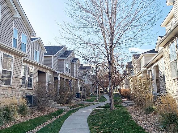 Recently updated townhome with many upgrades to enjoy. New luxury waterproof laminate flooring throughout the main level. New carpet on the upper floor. New interior paint throughout. Kitchen includes all new stainless steel appliances. New water heater. Living room is spacious with large windows which allow plenty of sunshine into main floor. Two story home with high ceilings and updated lighting. Master bedroom is located on the upper floor and includes master bath with double sinks. There are two additional bedrooms on the upper level along with a desired second floor large laundry room. Home has central air. 2 car attached garage with high ceilings and plenty of room for storage. This home is ready for a quick move in. You will be pleasantly surprised with the immaculate condition of the home. FHA Approved. HOA fees are low and include snow removal, trash and exterior structure maintenance. The exterior amenities includes walking paths and open space. 20 minutes to DIA, 30 minutes to Downtown Denver.