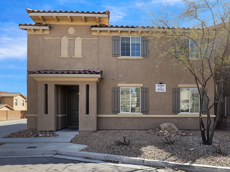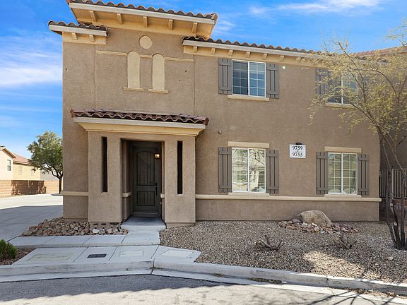Marvelous 4 bedrooms, 2.5 bathrooms, two-story home located in the Southwest part of town! This home opens into a spacious family room and dining space combined on the front of the home with a staircase off the foyer upon entry. This open and functional floor plan has 2 windows looking out to the front yard in this space. The dining space is open to the efficient kitchen that is on the back of the home. The efficient and bright L-shaped kitchen boasts a breakfast bar, granite countertops, pantry, recessed lighting, pot shelves, kitchen nook, and access from the garage. There is a sliding glass door off the kitchen nook leading to the outdoor space. All bedrooms are located on the second floor with the laundry for convenience. The master bedroom has a walk-in closet and the master bathroom is enhanced with a double sink vanity, solid surface countertop, water closet, garden tub, and a stand-up shower. This home has a 2-car garage. The residence is nicely situated in a great community to nearby shopping, restaurants, golfing, Southern Hills Hospital, and is located close to Interstate I-215. Contact us NOW for further details and viewing appointments. The combined family room and dining space are perfect for entertaining and family time. This home features a breakfast bar and a kitchen nook.