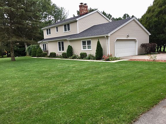 2 story vinyl sided home, with a 2 car finished garage, concrete driveway, 4 bedrooms, 2 half baths down and 2 full up. Situated on 1 acre with a 10x12 Amish outbuilding, 20x16 deck with a pergola and retractable canvas awning with a Flagstone patio. Kitchen features granite countertops with under mount stainless steel sinks and ceramic tile back splash and floor. The 2 half baths also have granite countertops with porcelain sinks and ceramic tile floors. The foyer and dining room have Brazilian rain forest hardwood walnut floors. Carpeting in the living and family rooms. Gas logs fireplace in the family room. All doors including closet doors are 6 panel solid wood. Basement with crawl and an emergency water backup for sump pump. This home also includes, I n ground sprinkling system using well water, Invisible fence, 2 year old roof, Champion windows, and septic system.
