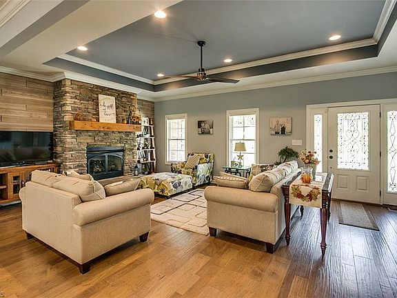 Stunning 2016 Custom Built Home with Attention to Detail Through Out. This Casually Elegant Home Features a Totally Open Floor Plan; Hickory Hardwoods, Double Barn Doors Leading to Bright Sunroom with Pine Tongue and Groove Stained Ceiling - Large Windows with wooded view. Gorgeous Kitchen with Gas Cooktop and Built-In Oven. Granite Everywhere. Massive 2100+ SQFT Basement with 14' Ceilings- Plumbed for Bath; Heat Pump Sufficient to Heat/Cool Basement if finished. Poured In Place Concrete Walls. Must See