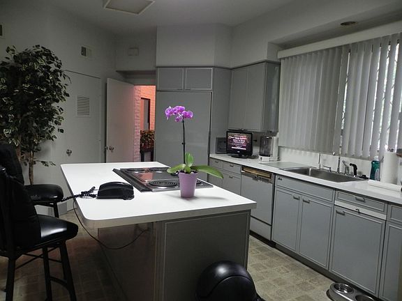 Cool, contemporary mid-century modern. Tall clgs, walls of windows, lge priv lot, garage, St Charles kit, lots of blt ins, SubZero fridge, freezer. Osland w/cooktop, dbl ovens. Sep laundry rm, good storage. Walk-in closets, great MBA. New flrg. Must see!
