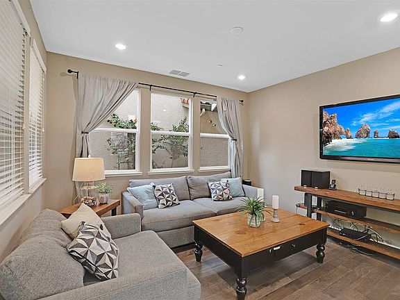 As you step into this Gorgeous Home, you immediately feel the Beautiful Ambiance surrounding you. The Open Concept Kitchen boosts an Island, Stone Countertops, Subway Tile Backsplash, and Stainless-Steel Appliances, which makes this a Wonderful place to Cook and Entertain. The Family Room, directly off the Kitchen, has Ample Windows and Lots of Light. Hardwood floors are throughout the first level, which includes a Half Bath. Upstairs there are Three Bedrooms, plus a Loft, which can be easily converted into a Fourth Bedroom or Office. The Master Bedroom and Bathroom is Spacious with Stone countertops, a Walk-In Closet and Tile Flooring. Enjoy your Morning Coffee on the Relaxing and Lovely Patio, which is finished with Well Appointed Extras. A Tankless Water Heater, Finished Garage, Fresh Air Circulation System, Upgraded Solid Core Doors, And Recessed Lighting are all part of this home. Directly across the street from the Park, and close to ACE Train, Freeways and Shopping, this Home has it All!