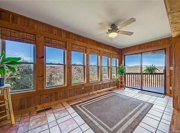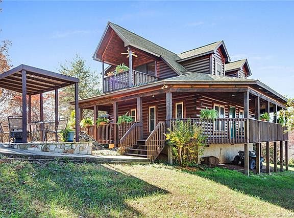 Magnificent panoramic mountain views and privacy surround this 1.5 story log home on 1.64 acres, located between Lake Lure and Rutherfordton. A gas fireplace with stone surround is the focal point of the great room with cathedral ceiling, which opens to a sunroom that brings in the mountain views. The kitchen and breakfast area also open to the great room. An addition in 2004 added two bedrooms and a large room that could be a dining room or family/rec room. Outdoor living abounds with a wrap-around deck to enjoy the views and a patio with pergola and waterfall for pure relaxation. The open loft includes a full bath at one end giving the option of using part of the loft as a master bedroom, complete with covered balcony. The other end features a wall of windows from which to enjoy the mountain view and lets in lots of light. Extras include approximately 400 sq. ft. of unfinished basement and a separate outbuilding for ample storage.