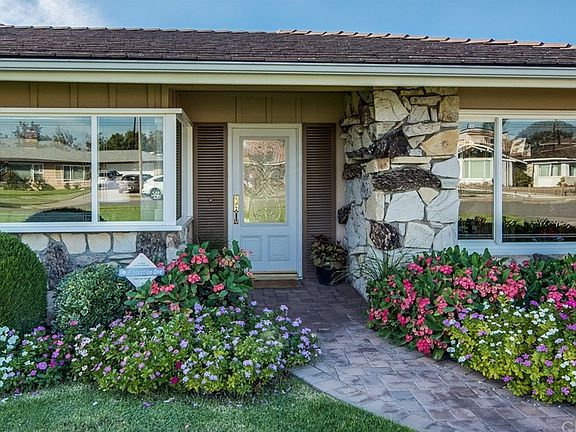 Incredibly gorgeous curb appeal on this single story beauty w/ a panoply of colorful flowers,professionally sculpted shrubbery and bountiful fruit trees,etched glass dual pane vinyl windows,dual sliding French Doors,concrete tile roof,a magnificent Rose Garden,a short walk to the Circle of Orange, all on a private cul-de-sac.An expansive,luscious lawn in front,accented by a âGardenerâs Delightâ flower garden,designer pavers on driveway and walkway,up to a magnificent leaded glass front door.Marble foyer at entry,then into an expansive living room w/ parquet floors & aprodigious brick fireplace w/rich wood mantle & extra-large hearth.oak wood floors grace the family room w/vaulted open beam ceilings and a second brick fireplace.An Extra large kitchen w/ wood cabinetry,four burner induction stove top,an extra-large pantry & an abundance of counterspace.Quaint breakfast nook off kitchen & an additional three seater breakfast bar! Fourth Bedroom is currently operating as a HUGE dining room w/multiple closets & parquet flooring.Bedrooms are oversized w/ mirrored wardrobe sliders.Huge master bedroom (15â x 14â) w/four closets!An Extra-large sunroom w/ open beams ceilings and a âWall of Windowsâ all around w/ views of Rosegarden & Orchard out back! Detached spa room(could be made into dollhouse or workout room).Private Covered patio,21 fruit trees,Block walls,RV parking,large garage w/ built-in storage,rain gutters,indoor laundry room w/utility closets!Once-in-a-Lifetime opportunity