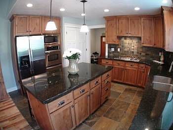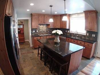 Hickory wood floor, granite counter tops throughout, slate back splash, built in double oven, stainless steel appliances