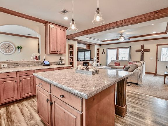 This spacious country retreat sits on a gorgeous 5 acre lot in the coveted community of Harper, Tx. Step inside to discover this 4 bedroom, 2 bath home that blends comfort and contemporary amenities. The kitchen features a large island/breakfast bar and is equipped with all stainless-steel Frigidaire appliances. A large pantry with sliding wood doors adds a touch of rustic charm while providing ample space, matching the beautiful wood beams and trim throughout. The living room has nice built-ins and a surround sound system. The spacious primary bedroom is complemented by a huge walk-in closet and bathroom which offers ample space, a walk-in shower, and soaking tub. The home's oversized utility room is another standout feature, complete with a sink & additional space for a second fridge & freezer. The 2017 home is retrofitted on permanent foundation, & 400 amp electric service has been installed (200 for house 200 for a future shop). Outside, relax around the fire pit or by the seasonal creek which forms the back boundary of the property. Beautiful oaks abound throughout the 5 acres of level to gently rolling terrain. Don't miss your opportunity to make this dream property your own!