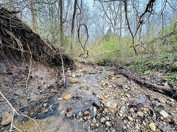 Escape city life to a private retreat with this rare wooded lot, nestled away from the main roads and offering views of the serene Big Blue River. This tract has ultimate seclusion with a gravel driveway that leads approximately 450 yards back, a quarter mile off the main road. The driveway opens into approximately 3.5 acres of manicured grass, perfect for picnics and outdoor activities. The drive continues to a 60 x 30 pole barn that boasts concrete floors, ample lighting and outlets, a wood-burning stove, and a bathroom that simply needs to be connected to the existing septic. Inside the cozy 400 Sq Ft. cabin, you'll find a fully equipped kitchen, a loft, and a full bathroom. For additional storage, a semi-trailer is located on the property and is included in the sale. The remaining land is a small tract hunters' paradise, boasting a variety of vegetation and elevation changes. During our first tour of the property, we were fortunate enough to spot whitetail deer and hear spring gobbles on the neighbor's pasture. The owner shared that three tom turkeys stroll around the cabin several times a week. For an added bonus, the northern border of the tract features an old railroad bed that provides a stunning overlook of the Big Blue River. Don't miss your chance to own this one-of-a-kind property that combines natural beauty, privacy, and all the amenities you need for a comfortable and peaceful lifestyle--showings by appointment only to pre-qualified buyers. There is a scrap metal dump on the northeast corner that will remain on site. The property will be sold as-is.