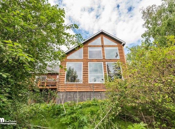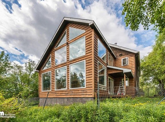 Spacious 3-bedroom cedar-sided home located in quiet and safe neighborhood, great schools, and easy commuting access to Anchorage and the MatSu Valley. Private 1+ acre lot. Set back from road. Partially wooded. Spectacular views. Large living-room with custom-built Italian-tile/brass front fireplace including chimney-top damper to seal off drafts and energy loss when not in use. See supplement..