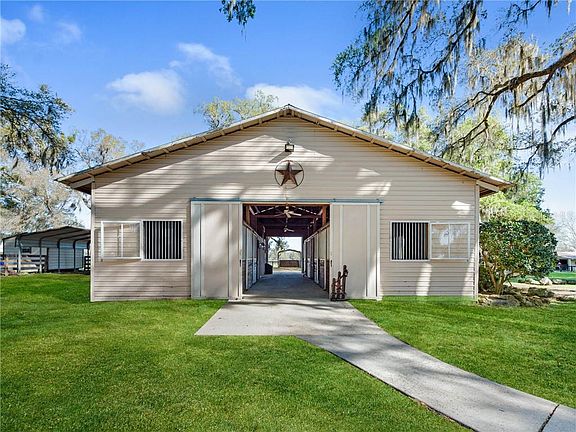 Mini farm paradise awaits you on this peaceful 4.5 acre well located farm only 15 minutes to the new World Equestrian Center in Ocala, Florida! The views from the front and back deck of the immense grand daddy oaks and grass fields will astound you. The house boasts 3 bedrooms plus a den, fireplace, expansive kitchen, large master bathroom & gorgeous views of the property from the large front, side and rear decks. The center aisle barn has 6, 12' x 14' stalls, tack room with laundry, half bath and feed room with sink. There are 6 large grass paddocks with water, room for an arena, hay storage, wash rack & a car port. This turn-key horse farm will not disappoint you!
