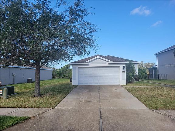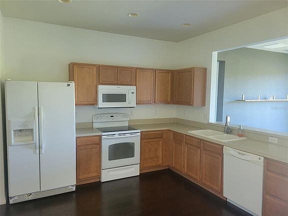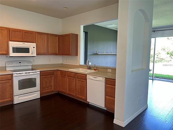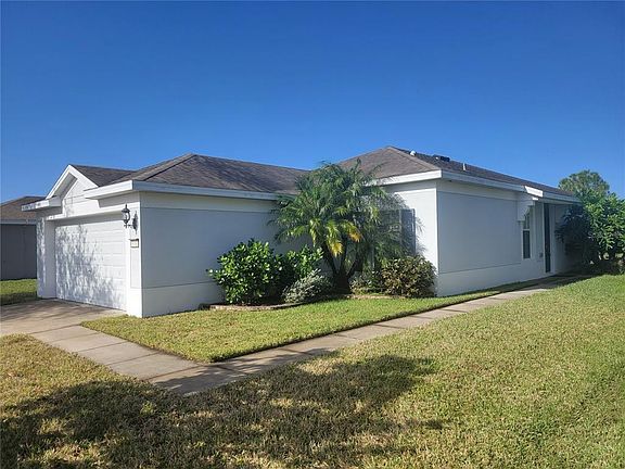 HARRISON RANCH. Nice quiet community with lots of activities. 3BR/2BA with double car garage. Kitchen has range, refrigerator, dishwasher, microwave and wide pass thru to Living Room. Dining Area right beside Kitchen. Living Room has sliding glass doors to patio slab and large back yard with view of lake and trees. Master Bedroom has vaulted ceiling. Home has 2nd. and 3rd. bedrooms. Two bathrooms have tub/shower combo and one has access from bedroom and from hallway. Washer and Dryer in laundry closet. Blinds. Home entry is around to right of garage giving much privacy. Harrison Ranch has on site staff, Community Center, Fitness Center, Jr. Olympic Community Pool, Billards Room, Game Area, 2 Playgrounds, Tennis/pickle ball/basketball courts, nature trail and an Activity Director. Centrally located to downtown Palmetto, downtown Bradenton, St. Pete and Tampa. Easy drive to I-75, Ellenton Outlet Mall, dine, shop, medical, schools, entertainment, airports.