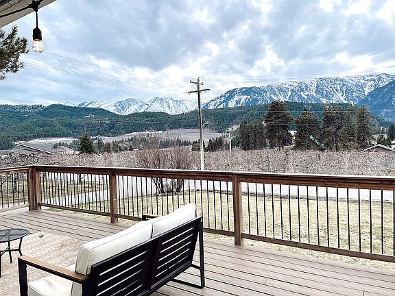Fantastic opportunity to settle on a quiet road close to downtown Leavenworth. The home is surrounded by orchards on all sides creating a private escape and breathtaking panoramic views of the mountains and pear trees. Producing pear and apple trees on half of the property. Massive newly built trexx deck off of the main open concept living space - great for indoor/outdoor living. New modern farmhouse renovations completed throughout the home - refinished hardwoods, carpeted bedrooms, tiled bathrooms, paint, fixtures, all new tubs and showers, and vanities. New small matching deck off of the master - perfect for your morning coffee. Open concept living, mudroom, basement, and unfinished shop/storage with outside access.