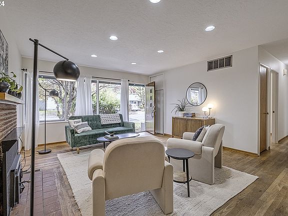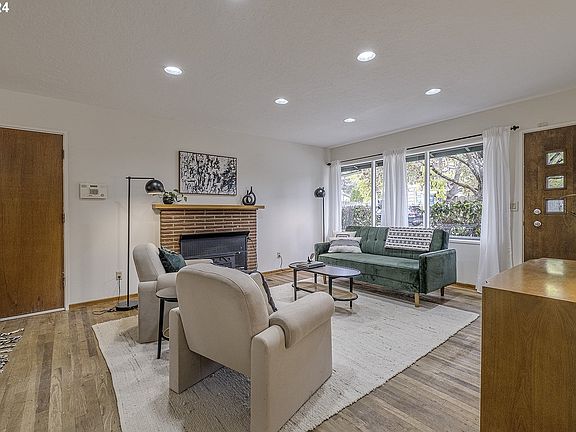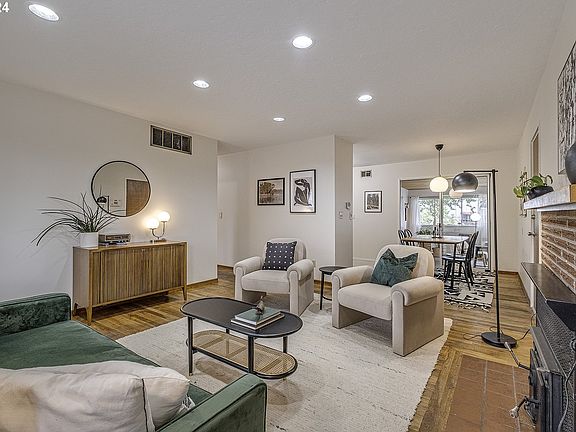 Welcome to this classic mid-century modern home! Built in 1956 with all the charm of the period, the MCM elements of wood and stone are present in the original hardwood floor and fireplace brick and tile as well as in the great room’s polished concrete floor and rough sawn douglas fir ceiling. The traditional living/dining/kitchen floor plan is enhanced by the versatility of the 400 sqft great room. Surrounded by windows giving a full view of the back gardens, this room is perfect for a large family room, a game room with a pool/ping pong table or an entertainment room complete with a wet bar. The fenced backyard has beautiful mature trees, spring blooming lilac and magnolia shrubs, as well as sunny areas with raised beds for veggies and ample space for anything you want to add. Solidly constructed and well maintained with a 2011 installation of a new roof, gas furnace and air conditioning and a new gas water heater installed in 2021. There are many parks in the area, shopping, restaurants and public transport and a high rating for bike-ability. Easy access to highways. Come and experience this delightfully welcoming home and it’s many charms! [Home Energy Score = 3. HES Report at https://rpt.greenbuildingregistry.com/hes/OR10233269]