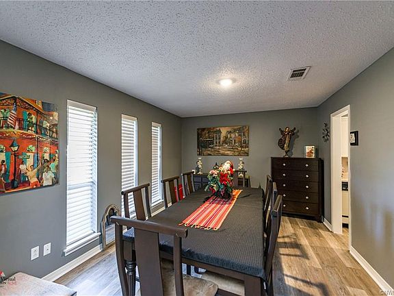 Wait until you see this unique & charming home for sale in the quiet community of Colquitt Road Estates which is far enough from the hustle & bustle to get some peace, but close enough to conveniences like shopping, schools, & popular thruways! This home has fantastic curb appeal with its all brick Spanish style flair and big front porch perfect for seasonal decorating. The interior is fresh and updated with trendy neutral paint and gorgeous new wood laminate flooring. They've packed alot of living space in this home with a big living room with a cozy brick fireplace and an elegant formal dining room that could also serve as a den or home office. The kitchen is bright and cheerful with crisp white cabinetry, gas range, built-in microwave, and a roomy breakfast nook. Each of the bedrooms is spacious with plush carpeting, ceiling fan, and ample closet space - and the master has a full private bath. The backyard is fully fenced and the rear entry carport can double as a big covered patio!