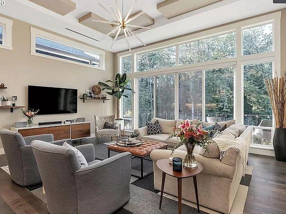 This stunning home blends modern luxury with versatile living spaces, ideal for those seeking both comfort and style. The expansive open floorplan, accentuated by high ceilings and abundant natural light, creates a warm and welcoming ambiance that's perfect for both entertaining and relaxation. At the heart of the home lies a gourmet kitchen featuring a massive island with a built-in waterfall table, top-tier stainless steel appliances, and ample storage a dream setup for cooking enthusiasts and social gatherings. The thoughtfully designed layout offers flexibility for multi-generational living or guest accommodations with its spacious downstairs area, complete with its own full kitchen, great room, and two bedrooms. This separation of living spaces allows for privacy and convenience with a separate entrance. The outdoor area is truly a retreat, featuring an ultimate outdoor community living space with a covered seating area, mounted TV, outdoor kitchen with a BBQ, and a cozy firepit. The backyard offers scenic views of the Hall Creek greenbelt, enhancing the sense of tranquility. Whether for year-round outdoor dining or hosting, this space is an entertainer's dream. Conveniently located near major highways and within minutes of downtown and Nike, the home provides easy access to work, leisure, and city amenities, all while nestled in a serene environment. ** Home is unfurnished Flexible lease options Looking for tenants who earn income of 2.5-3X rent amount, with a credit score of 720+. No prior evictions or criminal background for the last five years.