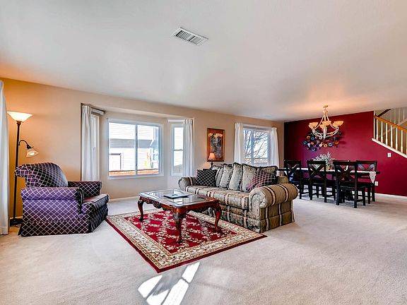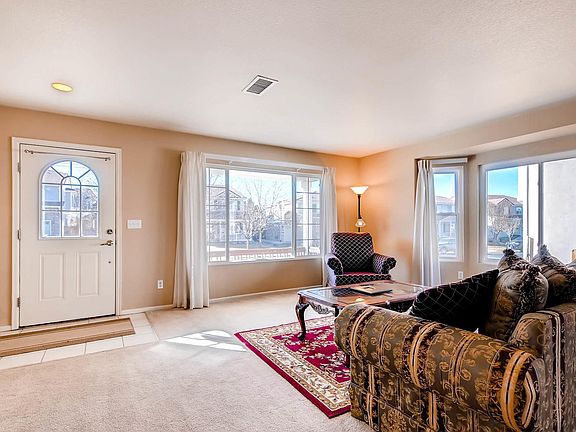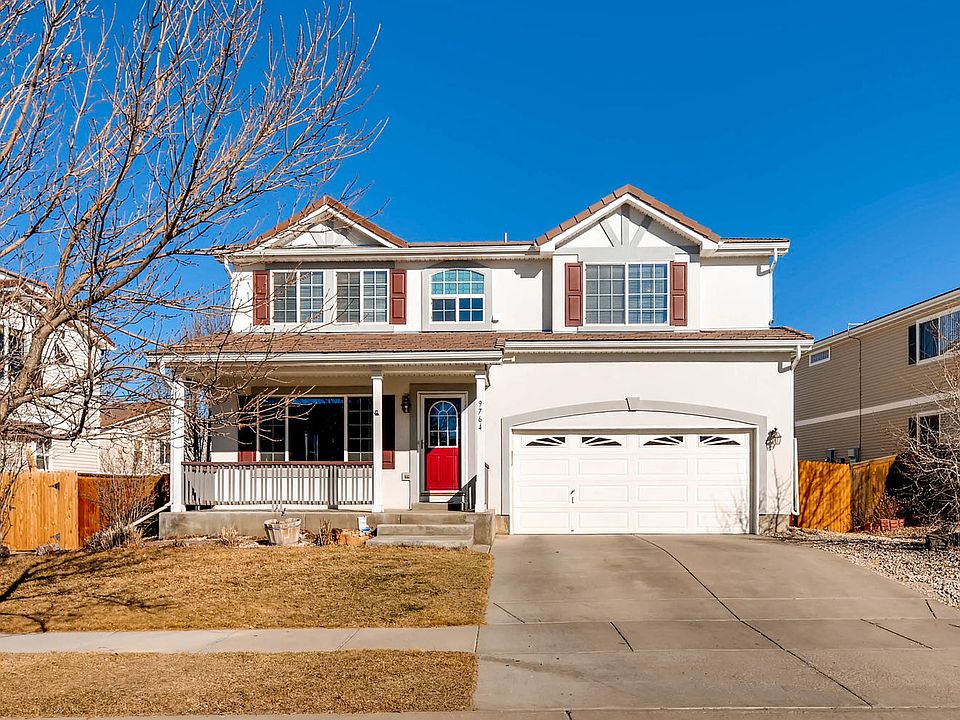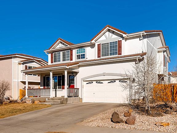Beautiful home that is move in ready! This home includes everything a buyer would need. Main floor includes a formal living, formal dining, main floor office, remodeled half bath, family room, kitchen. Kitchen includes large walk in pantry, island, original upgraded cabinets, appliances included are kitchen aid stainless dishwasher, stove/oven, microwave, refrigerator negotiable, and kitchen overlooks the family room. Hardwood floors in the family room and kitchen. 2nd floor includes large loft, spacious master bed with 5 piece master bath, 3 spare beds, full bath, and the laundry room. The finished basement is very cozy-picture an old western movie! Other features include a deck, a shed for extra storage, concrete tile roof, new AC, new water softener. Lots of amenities in the area including KingSoopers, Rec center to be built, walk to the park, close to DIA, and highways.