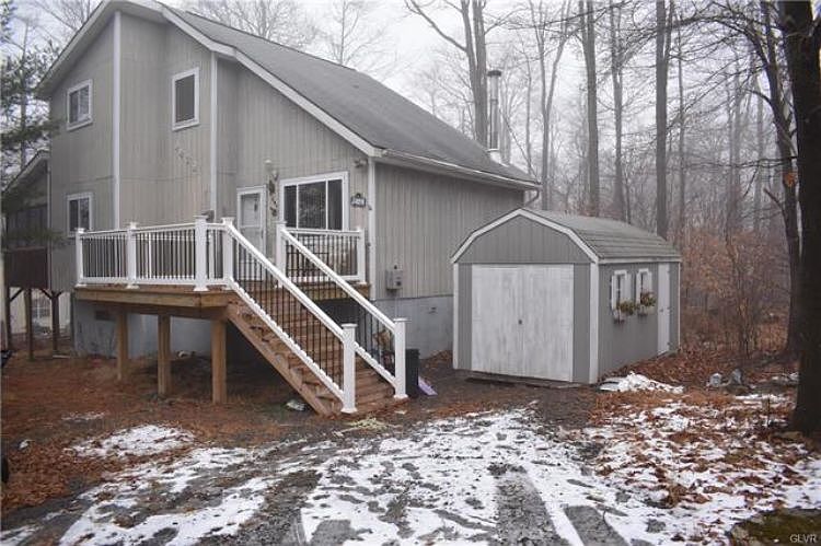This spacious 5 bedroom home is now for sale in the Poconos. This fantastic house has so much to offer. The Large living room has a wood stove that provides awesome heating eliminating additional expenses. The dining area and Florida room provide additional space as well as an enclosed deck of the kitchen. Upstairs consists of 2 additional bedrooms with a bath and the fully finished walkout basement has additional bedrooms. The possibilities are endless. The house is on a cul-de-sac for additional privacy. This home is amazing with so much potential.