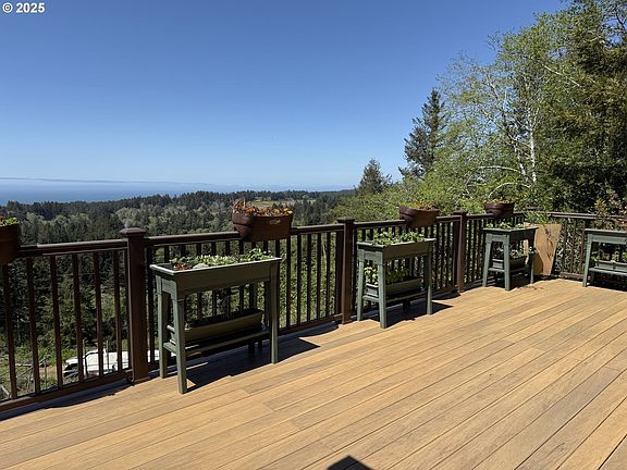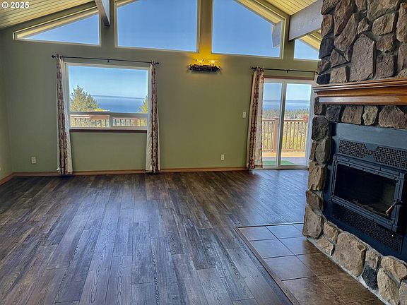Immaculate 3BD/3BA Coastal Home with Panoramic Views!Nestled on a private hillside with sweeping views of the Oregon coastline, trees, and downtown Brookings, this beautifully remodeled home offers comfort, space, and pride of ownership throughout. The open-concept living area features vaulted ceilings, abundant natural light, luxury vinyl and carpet flooring in bedrooms. The home offers a wood-burning stove upstairs and pellet stove downstairs.Enjoy three spacious bedrooms plus a flexible suite/den/bonus room perfect for guests or a home office. Step onto the wrap-around deck to take in the stunning views and sunsets along the Oregon coastline. The property also includes an attached garage, plus a separate second garage—ideal for a workshop, boat storage, or additional vehicle. RV parking with hookups included!Minutes from town yet tucked away in peaceful surroundings, this turn-key home is a rare coastal gem in the coveted Marina Heights neighborhood.