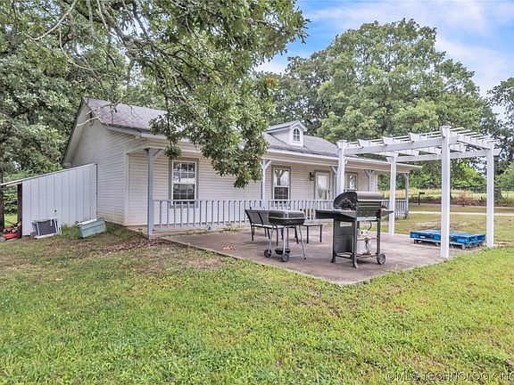 This 1,232 square foot 1 Story home with 3 bedrooms, 2 full baths, Custom Oak Cabinets throughout and a 48 inch wide hallway was built in 2007. It offers a quiet country setting on .63 acres with a Greenbelt. The Circular drive leads you to two of the home entrances. Level Driveway and sidewalk to the Full-Length front porch with great access for a wheelchair or walker. There is a large entertainment pad perfect for a Gazebo and even a Hot Tub. A 2-car detached carport. This is a beautiful natural retreat, bring your Chickens and Bees. Multiple Stately Oak Trees – It feels as though the Big Oak trees are giving you a hug every time you step out onto the land. Great roads lead to this home. Located in the Braggs Oklahoma area and within 5 miles of the Arkansas River and Green Leaf State Park and Lake. This location is perfect for those who love the outdoors on site as well as anyone looking to camp, hike and fish some of Oklahoma’s greatest Lakes and Rivers.