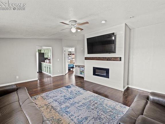 Welcome home to your very own Colorado retreat! This updated 3-bedroom, 2-bath home offers the best of Colorado country living with all the modern touches today’s buyers love—sitting on 5.5 acres with horse zoning, stunning views, just 4 minutes to I-25 and 20 minutes to Fort Carson. Step inside to fresh interior paint, updated baseboards, trim and gorgeous laminate flooring that flows through kitchen, laundry room, and bathrooms. The heart of the home features a sleek kitchen with an upgraded stainless steel appliance package (including gas range and hood!), custom tile backsplash, pantry, and updated cabinet hardware. A fresh new statement chandelier was just installed in the dining room. The spacious living room boasts a custom-built mantle and cozy electric fireplace, creating a perfect gathering space. Each bedroom includes a walk-in closet and ceiling fan, while the primary suite features a private bathroom with a walk-in shower and tile surround. Both bathrooms include newly installed toilets, and the laundry room has been fully transformed with stylish flooring, cabinetry, shiplap accents, and a full-length mirror that cleverly conceals the water heater. Central A/C keeps you cool, and the washer and dryer are included, making this home that much more turnkey and move-in ready. Outside, you’ll find a custom built wooden bridge, a playground, plenty of room for RVs, a future barn or detached garage, and a private shooting area with targets that stay. Sip your morning coffee or hot chocolate and enjoy epic Colorado sunsets with unobstructed views of the rolling hills and mountains. Homes like this don’t come along often—spacious, stylish, and serene. Come see it in person and fall in love with the lifestyle this property offers.