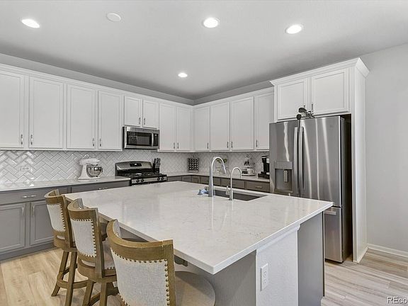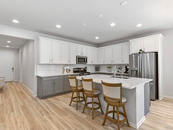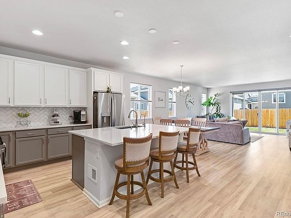 This Ranch home is absolutely stunning! This Richmond home-Arlington energy efficient model features 5 bedrooms and 3 bathrooms with finished basement. The main level features an inviting floor plan into the family room, dining room, kitchen, two bedrooms, full bath, laundry room and private primary suite. Owners suite includes double vanity, granite counters and huge walk-in closet! Kitchen is absolutely gorgeous with white tile backsplash, stainless steel appliances, large island with granite counters, bar seating and large pantry. Finished basement includes two additional bedrooms, one full bath, large room for entertaining and extra storage!! Enjoy summer evenings outside in the backyard under the covered patio! Upgrades include solar panels, water softener system, security system, custom blinds throughout, garage height extension, dog run and covered patio. Solar will be paid off at closing and panels will be conveyed to buyers! Close to schools, public transportation, restaurants, parks and so much more! Home looks new and ready for you! Schedule your showing today!!