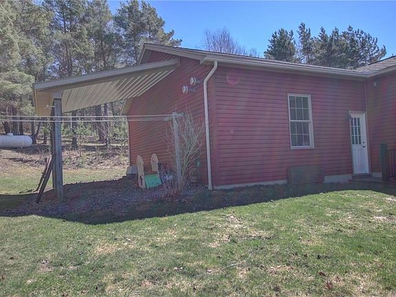 Nestled back in the tress and hidden from view is this little slice of heaven, just waiting for you. This beautiful Hillside Ranch home was thoughtfully placed on the ridge overlooking the entire property and but tucked back into the trees for privacy. In the home you will find an open layout between the spacious kitchen, living room that looks over the property and dining room with a sliding door to the rear deck, where you can enjoy your summer evenings listening to nature. The large master bedroom suite includes a bathroom with both a separate shower and a tub that has views of the yard as well as twin closets. Two more bedrooms and a full bathroom round out the living space. A utility room with 1st floor laundry lead to the garage and interior basement access. In the basement is a finished living space, office and the 3rd, full bathroom. The other half of the basement is unfinished with 9' ceilings and a double door walkout for ease of access. An oversized garage parking for 2 cars and lots of additional storage in the front and a huge, heated workshop in the rear portion. All of this is set on 4.5+ acres of secluded property on a quiet street. This is a must see!!! 2021-05-20
