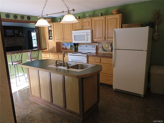Sprawling Country Ranch has all the right updates! Newer Oak kitchen with large center island and 2 breakfast bars. Kitchen appliances stay! There are 2 sliders leading to 20 x 11 deck. Formal dining room, large front living room and 3 good size bedrooms. Some hardwood floors. Nice updated full bath. Newer 6 panel doors. At opposite end of house is the huge but cozy family room with"Avalon Rainier" wood stove insert flanked by rustic stone, recessed lights. Windows and furnace 2007. Double wide blacktop driveway has parking / turnaround. Attached 2 car garage. Huge dry basement has interior and garage access, partially finished "mancave", lots of storage, work shop, laundry area. Unique generator set up for 6 individual areas of the home is ready for portable generator hook-up. New Amish made shed is approx. 20x12...second shed approx. 12x8. Fenced garden area, some apple and black walnut trees. Peaceful, country living... Showings begin on Friday July 31 at 4PM. Offers, if any, to be submitted by 3 PM on Thursday August 6th.