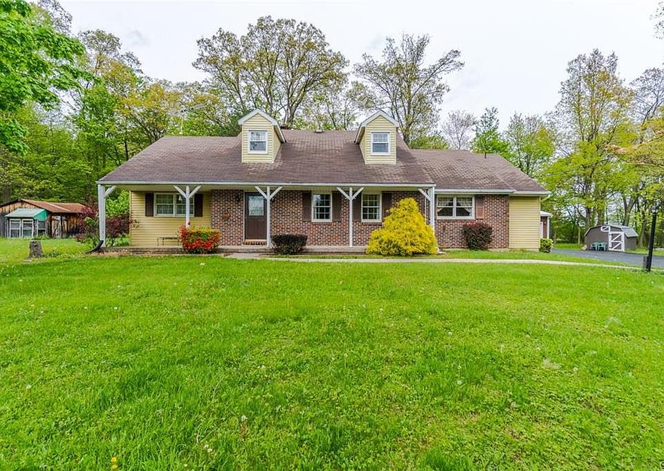 Set upon 6 partially wooded acres, this thoughtfully designed 4 BR/2.5 Bath Cape Cod style home is the perfect private retreat. Located in a serene country setting, yet just minutes from I-78 and Rt. 222. The functional layout has large living and family rooms that open to a spacious kitchen and adjoining dining room. 1st floor master bedroom suite with walk-in closet and private bath with oversized shower. Fantastic walk-in pantry/laundry room, large utility/coat closet, & a half bath round out the 1st floor. Upstairs, find 3 bedrooms, an additional full bath, plus 2 HUGE storage areas. Additional storage can be found in the ample unfinished basement w/ outside entrance. Hardwood floors throughout much of the home. Concrete and paver patios overlook the extensive property, full of stunning natural beauty. Outbuildings include a detached 3+ car garage, workshop w/electric, utility shed, tractor shed, and garden shed/greenhouse. Central AC. Make this one-of-a-kind property yours today!