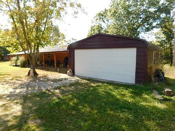 Move in ready home on 4.69 acres! Private gravel drive leading off of highway to your gated oasis with a seasonal creek at the rear of the property. Apple, Pear, and peach trees! White Pine log siding added 3 years ago. Covered front porch runs entirety of home featuring Cedar posts. Enclosed heated rear porch to enjoy the wildlife. New flooring in living area and kitchen. Garage, Carport, and two outbuildings. Easy driving distance to Branson and Harrison!
