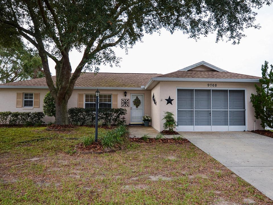 This Trieste model home is located in the much sought after gated 55+ community of On Top of the World. Home features newer roof (2016), newer HVAC (2013), newer washer/dryer (2015), fenced back yard, split bedroom floor plan, Lanai at the back of the home, 2 bedrooms, 2 baths, wide 1.5-car garage, and more. Lawn care, basic cable, gym, 24-hour guarded gate, and more are covered under your monthly HOA fee. The Living room is in the front of the home, and the eat-in kitchen which features slider door access to the Lanai is located at the back of the home. The split bedroom floor plan has the Master Bedroom Suite located on the left side of the home, and a master bath with step-in shower. A second bedroom and guest bath are located down a hallway on the right side of the home.