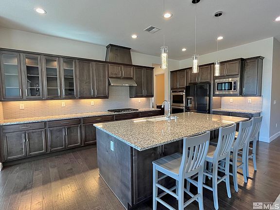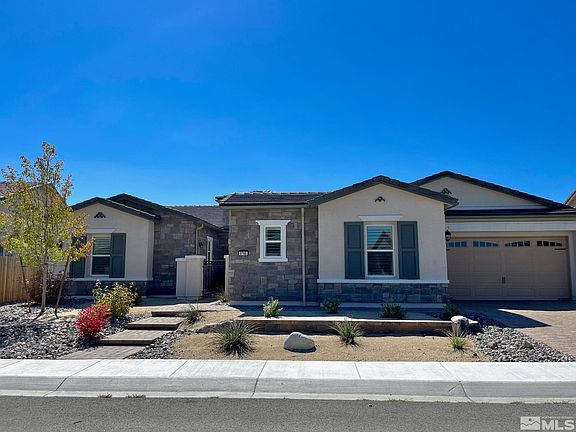 Panoramic views of Mt. Rose & the Eastern Sierra across the marsh w/ no rear neighbors! Watch sunset over the Valley from this rare northeast-facing home in the gated enclave of Sorrento Trails. Enjoy access to the private Bella Vista Clubhouse w/ banquet kitchen, game room, gym, outdoor seasonal pool & spa w/ covered patio seating around outdoor fireplaces. Cyan Park is just across Veteran’s Parkway w/ Pickleball, tennis, playground w/ picnic area, ballfield & dog park. Toll Bros Taranto floorplan attached, The covered patio in back leads to a built-in seating area with fire-pit and outdoor TV, and expansive views over the wetlands to the mountains and access to miles of paved bike paths. The centerpiece of this luxury home is the gorgeous gourmet kitchen that offers an oversized granite island including storage & seating, contemporary pendant light fixtures, a large walk-in pantry with bar area, separate laundry room and a breakfast nook. The kitchen opens to the family room and modern gas fireplace with blower and backlighting and a big-screen TV. There is a spacious formal dining room on the other side of the gas fireplace with room for built-ins. The main living areas and master bedroom features expansive mountain and valley views! There are four large bedrooms with walk-in closets and en-suite bathrooms, all featuring walk-in showers with glass enclosures with bath fans on timers. The master suite is its own private oasis with a spa-like master bath featuring a glass-enclosed shower with 3 showerheads, an oversized freestanding soaking tub, and dual-sink vanities. There is another large office or family room with walk-in closet, or possibility for a 5th bedroom. There are wood-look porcelain tile floors throughout the main living areas for added durability. Upgrades include new low profile ceiling fans in all of the bedrooms and living room, plantation shutters in all guest rooms and electronic blinds in the main living area and master bedroom. The insulated three car garage features an instant-hot water heater, new epoxy coated floors, new LED lighting and an EV charger. There is an electronic keypad for the main entry, and programable thermostats with two forced air heating and cooling zones. There is an enclosed front courtyard and nicely landscaped grounds on efficient drip irrigation. Enjoy the close proximity to schools, stores and restaurants in the South Meadows and Damonte Ranch neighborhoods, which are all very bike able and walkable. Veterans Parkway is a fast connector to Summit Mall, Whole Foods, Costco, Reno-Tahoe Airport, and Lake Tahoe beaches, and several world-class ski resorts! Buyer and Buyer's agent to verify all information.