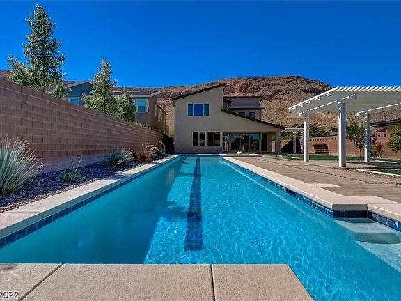 Summerlin Home with FULL SIZE LAP POOL!!! NO SID. Located in The Cliffs, this 3,243 sq.ft two story 4 bed/3.5 bath home is situated on a corner lot with the largest footprint in the neighborhood. Designed as a builder spec'd home, the kitchen offers stainless steel GE Profile appliances, oversized granite island, two-tone cabinets, quartz countertop w/ large walk-in pantry. The great room quickly establishes itself as the center of the home, providing endless opportunities and views of the well-manicured rear yard. Designer wood and steel stairs lead you to the loft, laundry room, 2 guest bedrooms, a full bath and primary suite that overlooks the 75-foot long pool and city scape beyond. Terra Luna's ideal location places you within minutes to Bishop Gorman, UnCommons, Durango Station and the 215 freeway. This property is a must see to truly appreciate what it would be like to call home! This size pool cannot be built again in Las Vegas, which makes this a rare property that won't last.