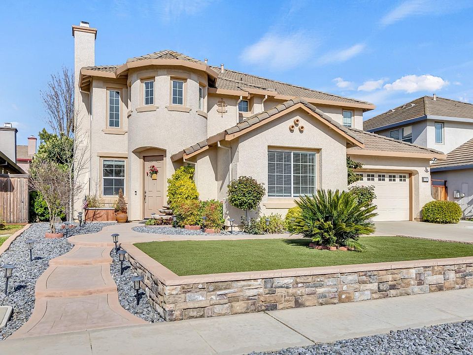 Step into luxury where elegance meets comfort in this spacious 3,281 sq. ft. dream home! Boasting 4 bedrooms, 3 bathrooms, and an open loft, this home offers an inviting layout perfect for families and entertainers alike. Be captivated by the soaring cathedral ceilings in the living room, complete with a cozy fireplace. The separate family room features an additional fireplace, creating the perfect ambiance for relaxation. The gourmet kitchen is a chef's dream, featuring white cabinetry, granite countertops, and ample space for culinary creations. Host unforgettable gatherings in the formal dining room, designed for elegance. Retreat to the luxurious primary suite, where the spa-like master bathroom awaits with a soaking tub, separate shower stall, double vanity, and plenty of space to unwind. Step outside into your private backyard oasis, featuring a sparkling built-in pool and low-maintenance paved concrete landscapingideal for entertaining or unwinding after a long day. With a 3-car garage and prime Elk Grove location, this home truly has it all! Don't miss this rare gem!