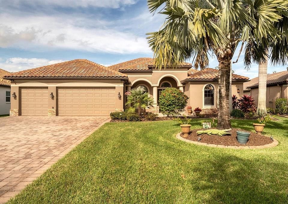 For the discriminating buyer only! The beautifully landscaped entrance welcomes you through glass double front doors into the expansive open floor plan of this meticulously crafted 2,349 Sq Ft, 3-bedroom, 2-bathroom, 3-car garage, pool home, nestled on .34-acres. Marvel at the panorama beneath the 10’ ceilings, enhanced by the striking 11’ trey ceiling in the great room, complemented by sophisticated wood-tile floors spanning the main living areas. Off the great room awaits a culinary haven, showcasing 42” cabinets, stainless steel appliances, tile backsplash, quartz and granite counters, soft-close and dovetail drawers, closet pantry, vented hood, cooktop, and wall ovens. A generously sized island/breakfast bar and eat-in area provide a convenient place for you to enjoy your morning coffee with a spectacular view of the pool and backyard through an aquarium window. Retreat to the Owner’s wing—a private sanctuary with 2 closets, an ensuite bathroom featuring dual sinks, a walk-in shower, an independent Mini Split AC System, and a nursery/den/office. On the opposite side of the home, discover bedroom 2, equipped with a Mini Split AC System, alongside bedroom 3 and the second bathroom. At the heart of the home, sliding glass doors create a seamless flow from the sizable great room to the extended covered lanai, complete with pre-plumbing for an outdoor kitchen, pool with a tranquil waterfall, and ample space for lounging within the spacious screened lanai. Adjacent to the pool area there is large fenced patio area, perfect for your tots outside play area or dog run. Ideal for car/toy enthusiasts, the oversized garage is a standout feature with 8’ high insulated garage doors, an additional 4’ of depth (28'6"x27'), and a lofty ceiling height reaching 10'6". Perfect for boat/car/toy storage or your own workshop. The garage also includes an independent Mini Split AC System, a utility sink, 2 pull-down staircases, a side garage door, custom overhead storage, cabinets lining the garage walls, and a workbench. Additional exterior features include aluminum accordion shutters, an oversized paver drive and walkway, a gutter system running along the home's entire perimeter with 2 French drains, an irrigation system connected to its own private well, and an underground pet fence. This breathtaking home also comes equipped with a built-in security system for added safety. The much-desired Enclave at Country Meadows boasts NO CDD fees, low HOA fees, grants swift access to nearby attractions, amenities, an array of fine dining and shopping options, not to mention 3 international airports. Nature aficionados will find solace in the availability of captivating outdoor spaces, including the Manatee River and Fort Hamer Park, and the award-winning Siesta Key Beach and Anna Maria Island. In essence, The Enclave at Country Meadows invites residents to a peaceful retreat, where luxury intertwines wonderfully with the serenity of its picturesque surroundings. Purchase with confidence as a 1 year home buyers warranty is included.
