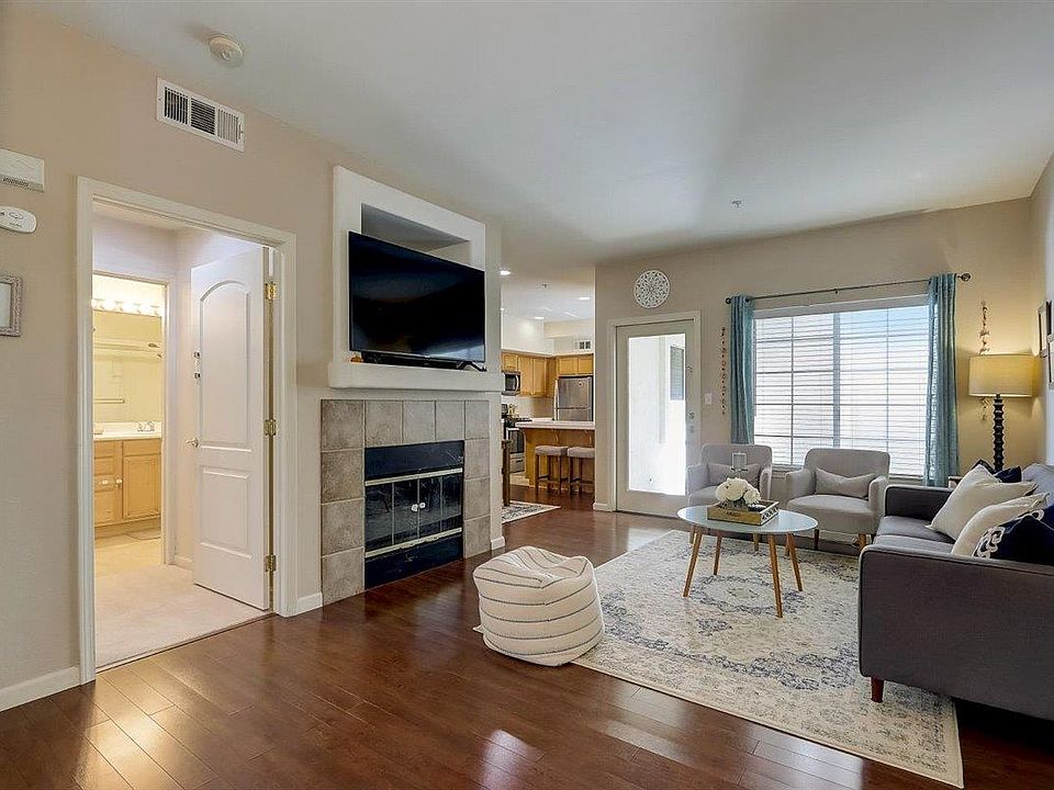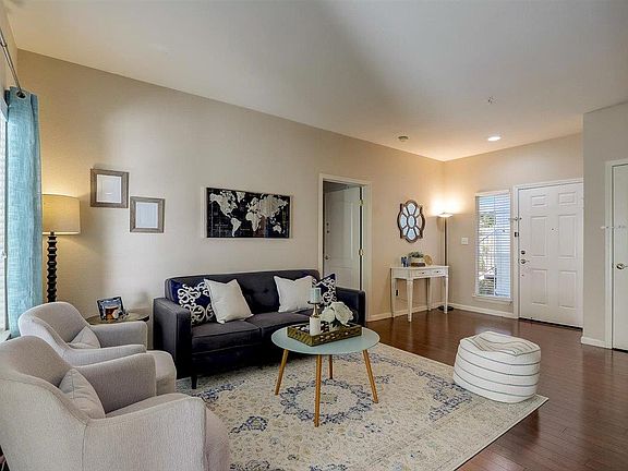 This beautiful gated community greets you with palm tree lined streets and a large water fountain. Move-in ready 2bed/2 bath first floor home. The master bedroom suite features 2 closets, dual sinks, and a tall stall shower. The spacious living room with a gas fireplace is adjacent to the kitchen. The kitchen has Maple cabinets, tiled breakfast bar, and tile flooring next to the dining area. The home also features a separate laundry area, attached one car garage, 1 additional assigned parking space, and a private back patio area. Come live at this private community with Pool & Spa, Clubhouse and Security Gate. HOA includes water & garbage. Conveniently located near BART, Lake Elizabeth, multiple parks, Downtown shopping, restaurants, and easy access to freeways for commuting.