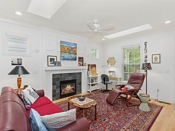 Located in the Peninsula Neighborhood of Iowa City, this thoughtfully remodeled home offers the ease of a main floor living plan and the kind of care rarely seen in today’s market. A white picket fence frames the front porch, leading into a light-filled living room with maple hardwood floors, a gas fireplace, and a timeless surround. Skylights, sun tubes, and a converted screened porch add natural light and create a sunny den just off the kitchen and dining area. The primary suite includes a walk-in closet and full bath, while a second bedroom, currently used as an office, is also on the main level. A guest bath, laundry, and mudroom connect to the attached garage. Maple hardwood floors run throughout the main-level living areas, including the bedrooms. The lower level has been reimagined as a large family room and studio space, with potential to restore a third bedroom if desired. Work by Modern Roots, Martin Construction, and Lammers Construction reflects the attention to detail seen throughout. Professional landscaping and a patio provide a quiet space to enjoy the outdoors. The home is close to neighborhood parks, the Thornberry Dog Park, Elks Club, Waterworks Prairie Park, and numerous walking trails, and it benefits from convenient access to the pedestrian bridge leading to Coralville.