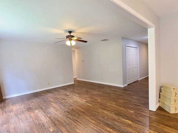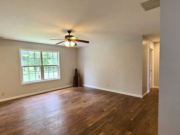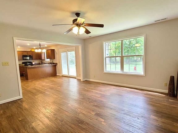 If country life is what you have been looking for, you have found it! This lovely ranch has a yard stretching almost an acre! The lovely ranch home has a large foyer that is perfect for any pinterest style project with lovely wood luxury vinyl tile the carries into the large living room. The living room is open to the dining area and kitchen. and has natural light and ceiling fan. The kitchen and dining area are open and has plenty of room for a large table and cabinet/hutch. The kitchen has plenty of counter workspace and cabinets. A large breakfast bar has space for barstools and entertaining. A large pantry hides cleaning items and trash cans! Located right off of the kitchen is a large laundry room complete with washer and dryer! Two guest bedrooms are large with double closet doors. The guest bath has fresh paint, large cabinet and counter. Finally, the master bedroom hsa just been painted in light gray and has a ceiling fan and two double closets. The en suite has a large double sink, stand in shower and linen closet. A large backyard has a firepit and shade trees. There is so much potential in this yard! Updates include: new back patio doors, freshly painted throughout, HVAC = 3 yrs, newer fridge, dishwasher, LVT floors. All this and the seller is providing a Limited Home Warranty.