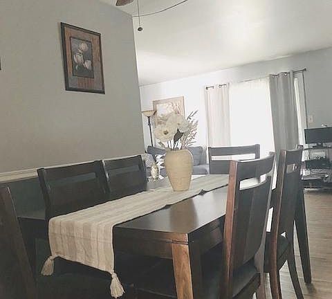 - InteriorFeatures: Ceiling Fan(s), Window Treatments, Eat-in Kitchen, Carpet, Wood Floors, Bar, Wet/Dry Bar, Combination Dining/Living, Upgraded Countertops, Chair Railings