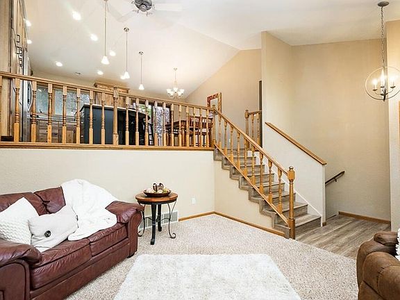 Fabulous updates...open floor plan with 2 story entry, beautiful brick fireplace, kitchen over looks living room. Incredible glazed hickory custom cabinets with lighted subway tile back splash, granite island & surprise walk-in pantry (you'll have to discover), nice master suite with private deck to yard, custom tile shower, walk-in closet & skylight. Daylight lower level. Nicely landscaped yard/concrete patio with fire pit & double waterfall water feature. 50 year shingles.