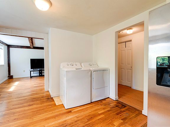 Welcome to Eliot Maine! This spacious first floor unit offers 2 large bedrooms and 1 bath with ample closet space. Updates include a recently renovated kitchen, and brand new washer, dryer, and stainless steel fridge. Historically, the home was Gould's Corner County Store. Neighbors remember riding up on horseback to get candy! Charm and character still abounds with original hardwood floors and gorgeous exposed beams c. 1890 throughout. Enjoy a coffee on your own porch swing and make use of the cozy backyard, shrouded with a mature privacy hedge. Unit includes a well tended raised bed for veggies & flowers. Conveniently located 13 min to Portsmouth, 8 min to Dover, 15 minutes to York & Kittery beaches, & 5 minutes to the Eliot Boat Launch. 2 Parking spots. Pets Negotiable. Available Immediately.