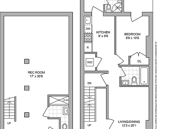 At the rear of the apartment, discover the primary bedroom, complete with a generously sized closet and an en suite bathroom.